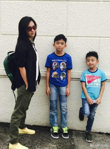 张柏芝和两个儿子合影