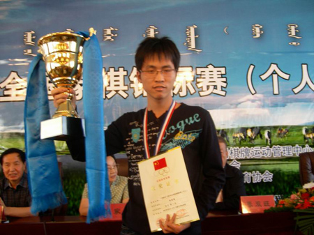 浙江小将赵鑫鑫在今天上午举行的全国象棋个人赛决赛中,慢棋弈和,快棋后手战胜5界全国冠军广东吕钦,从而加冕今年的全国冠军,也是有史以来第13位全国冠军!